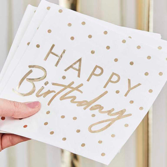 Nude & Black Happy Birthday Paper Party Napkins 16pk | Birthday Tableware
