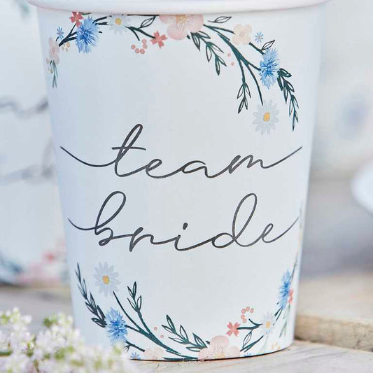 Floral Team Bride Bridal Shower Hens Party Paper Party Cups