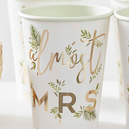Greenery & Gold Almost Mrs Bridal Shower Paper Party Cups