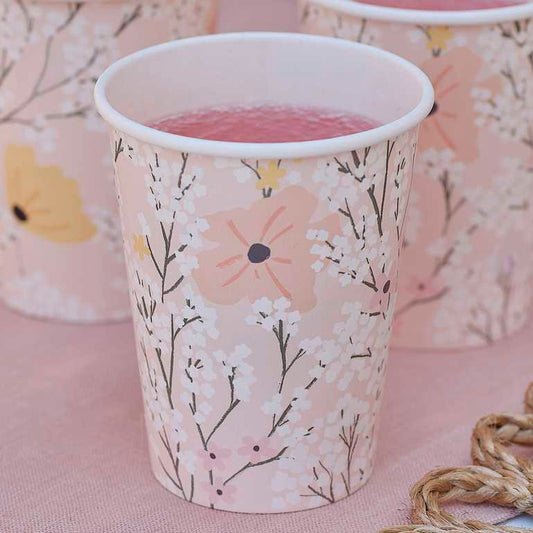 Ditsy Floral Pink Rose Gold Paper Party Cup Pack 8