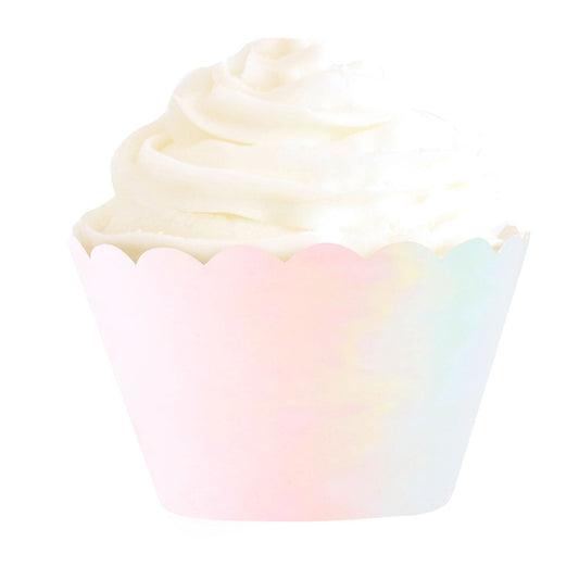 Pastel Rainbow Iridescent Holographic Unicorn Card Cupcake Wrapper