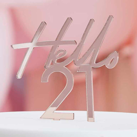 Hello 21 Rose Gold 21st Birthday Party Cake Topper