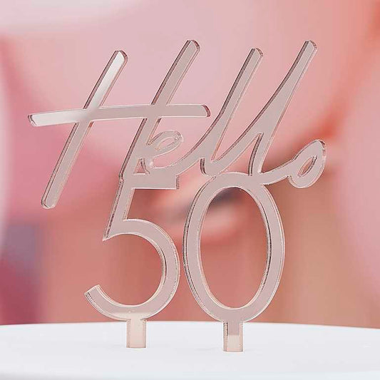 Hello 50 Rose Gold 50th Birthday Party Cake Topper