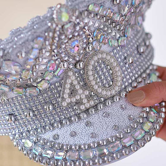 Silver Sequin & Pearl 21st Birthday Captains Hat